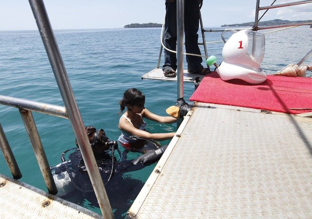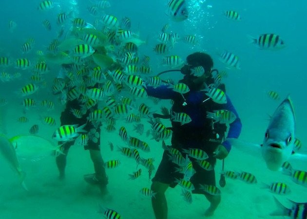 Sea Walking in North Bay island was the first one to be launched in the Andaman Islands. In fact, this Sea Walk was the first one to launch in India. Sea Walk in North Bay islands offers a very unique experience and the corals at the site of Sea Walk are very good. Certified experienced guides will accompany you underwater and will guide you throughout when you are underwater doing Sea Walk.